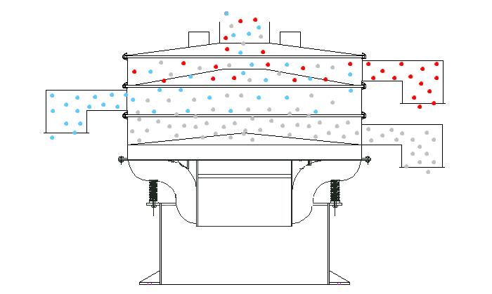 ★因此建立水平與拋擲三維翻滾運動。物料從中心到外緣在整個篩面上均勻分散,從而以螺旋運動往軸向傳播。細小顆粒從而完成了整個篩分過程。